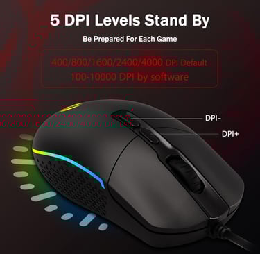 The adjustable DPI range allows smooth transitions between casual play, competitive gaming, and daily work.
